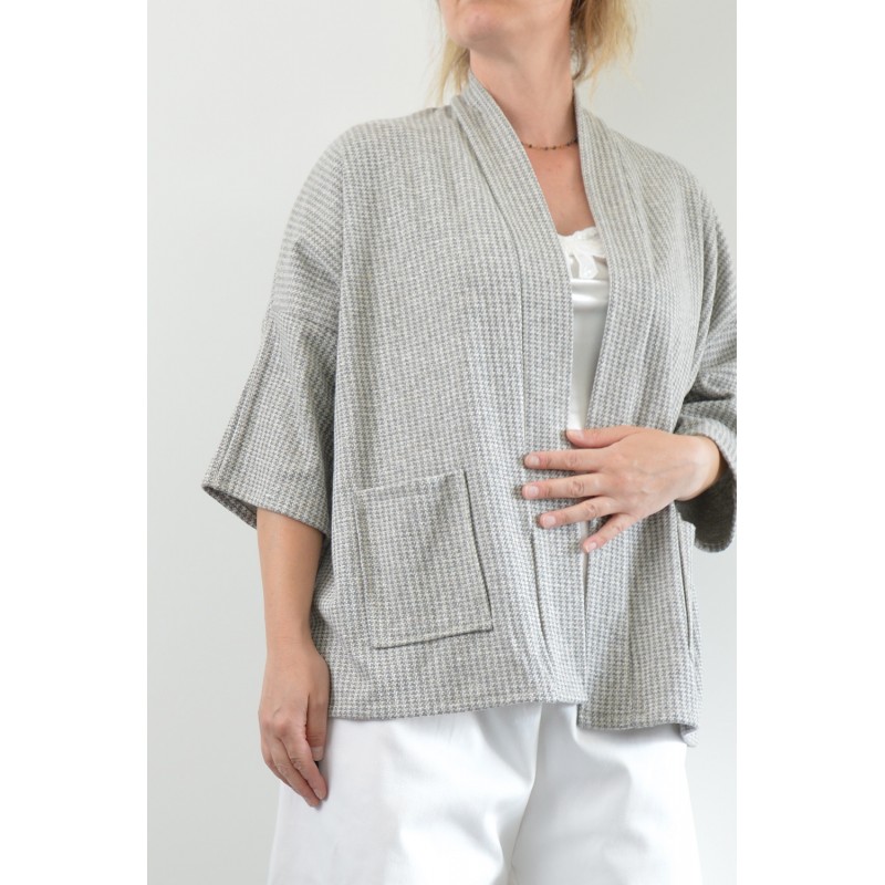 Kimono Giacca • Panna bluette tortora lino e cotone